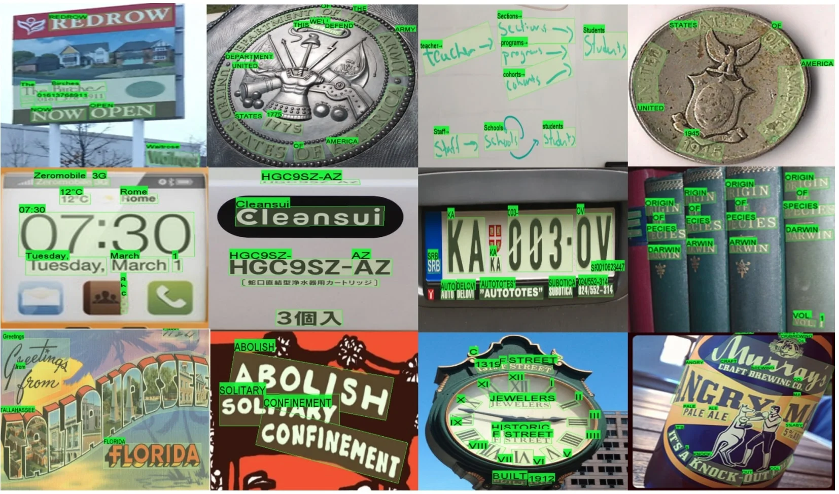 예시: 간판, 도로 표지판, 상품 라벨, 광고판