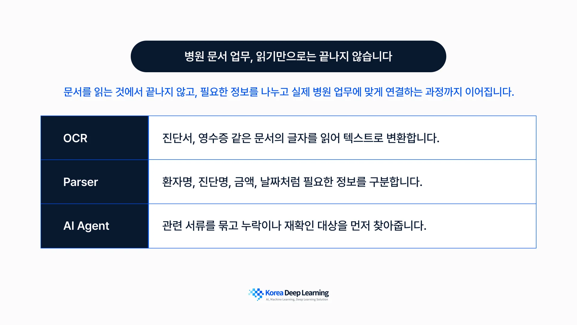 한국딥러닝은 병원 문서 업무를 이렇게 봅니다