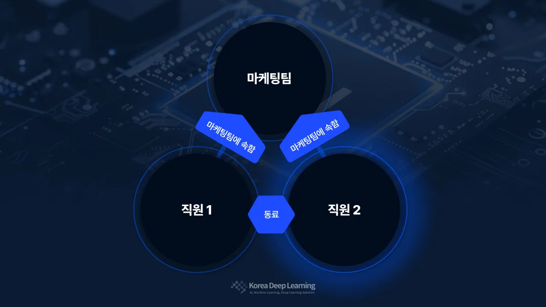 이 직원은 → 이 부서에 속해 있고