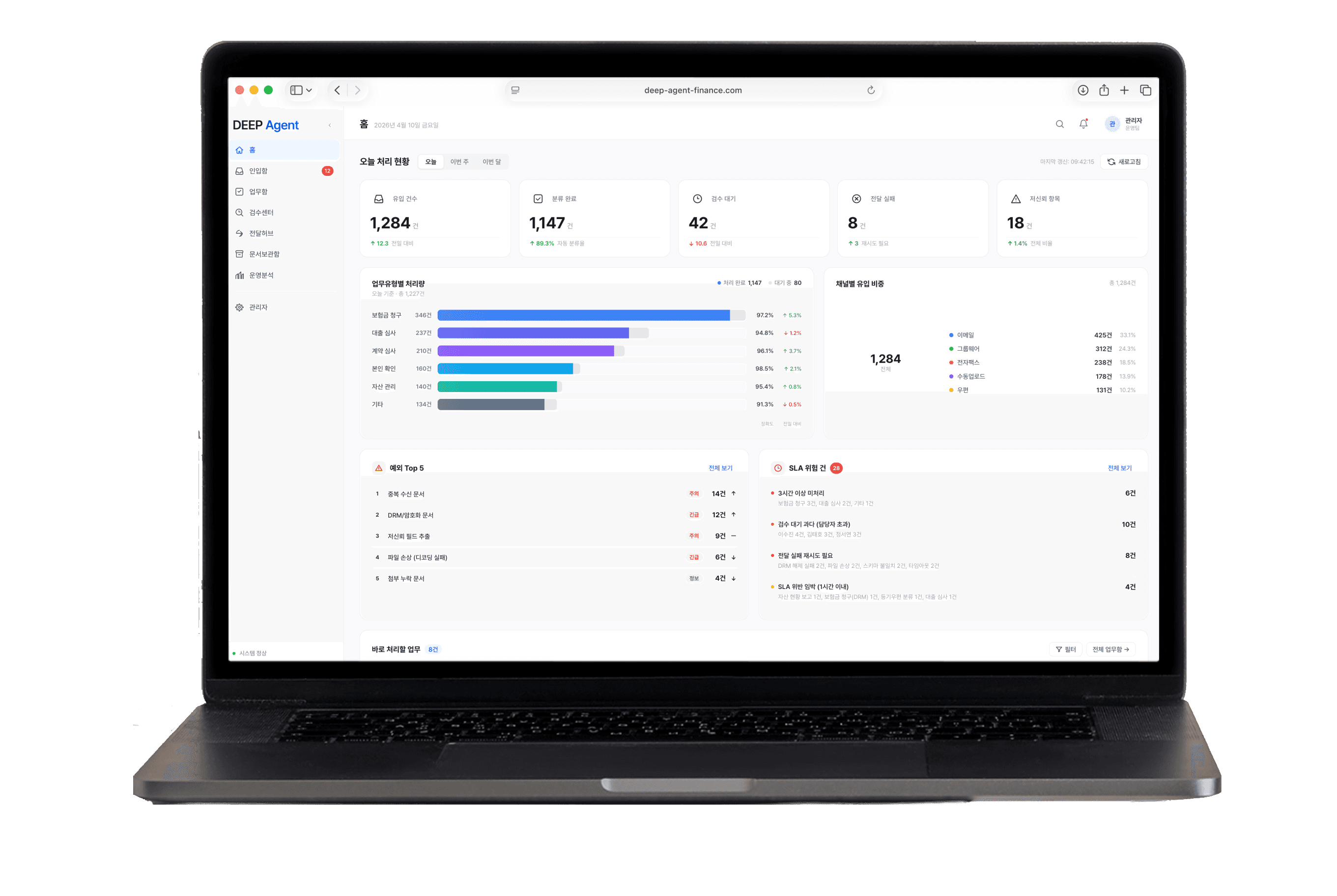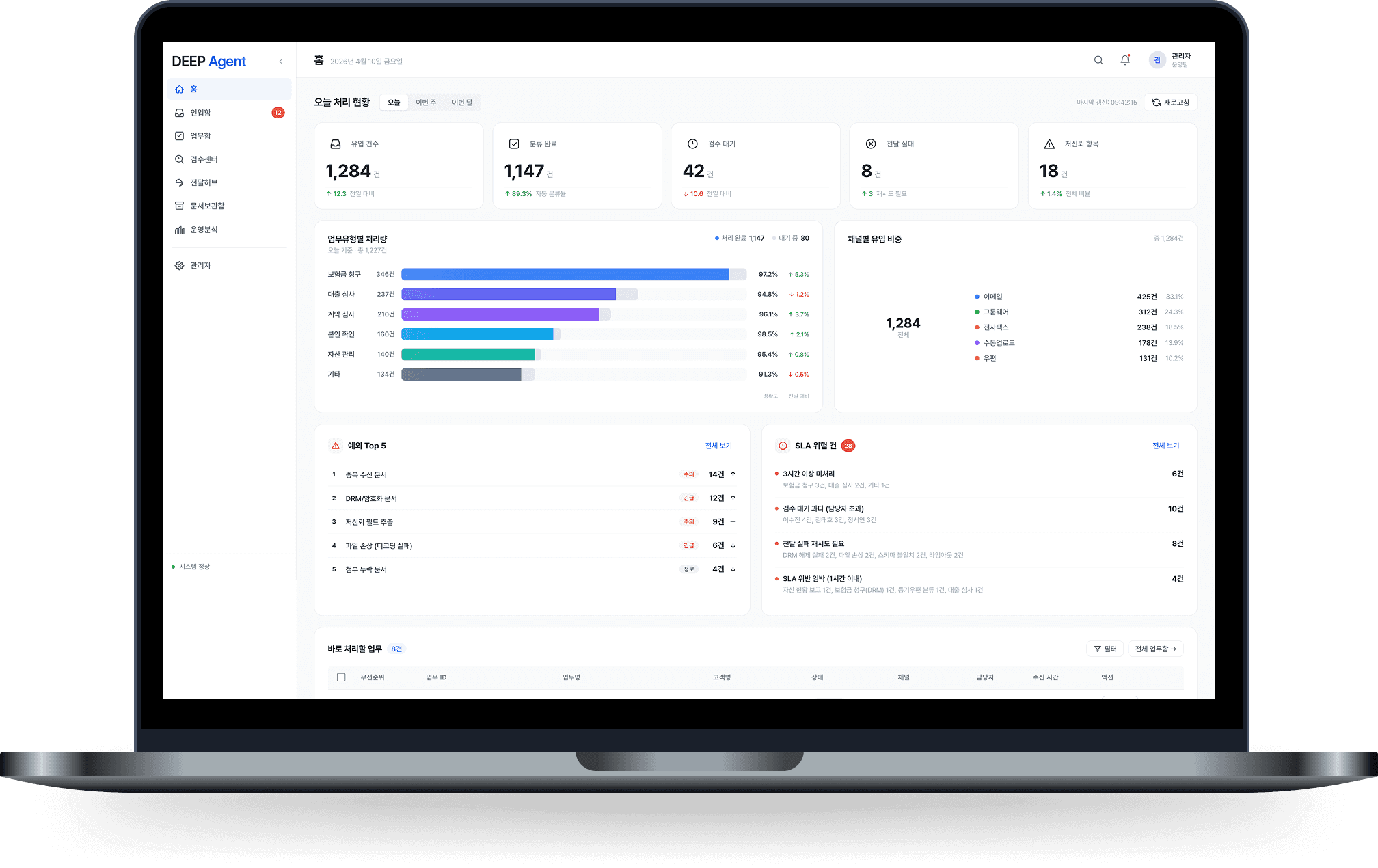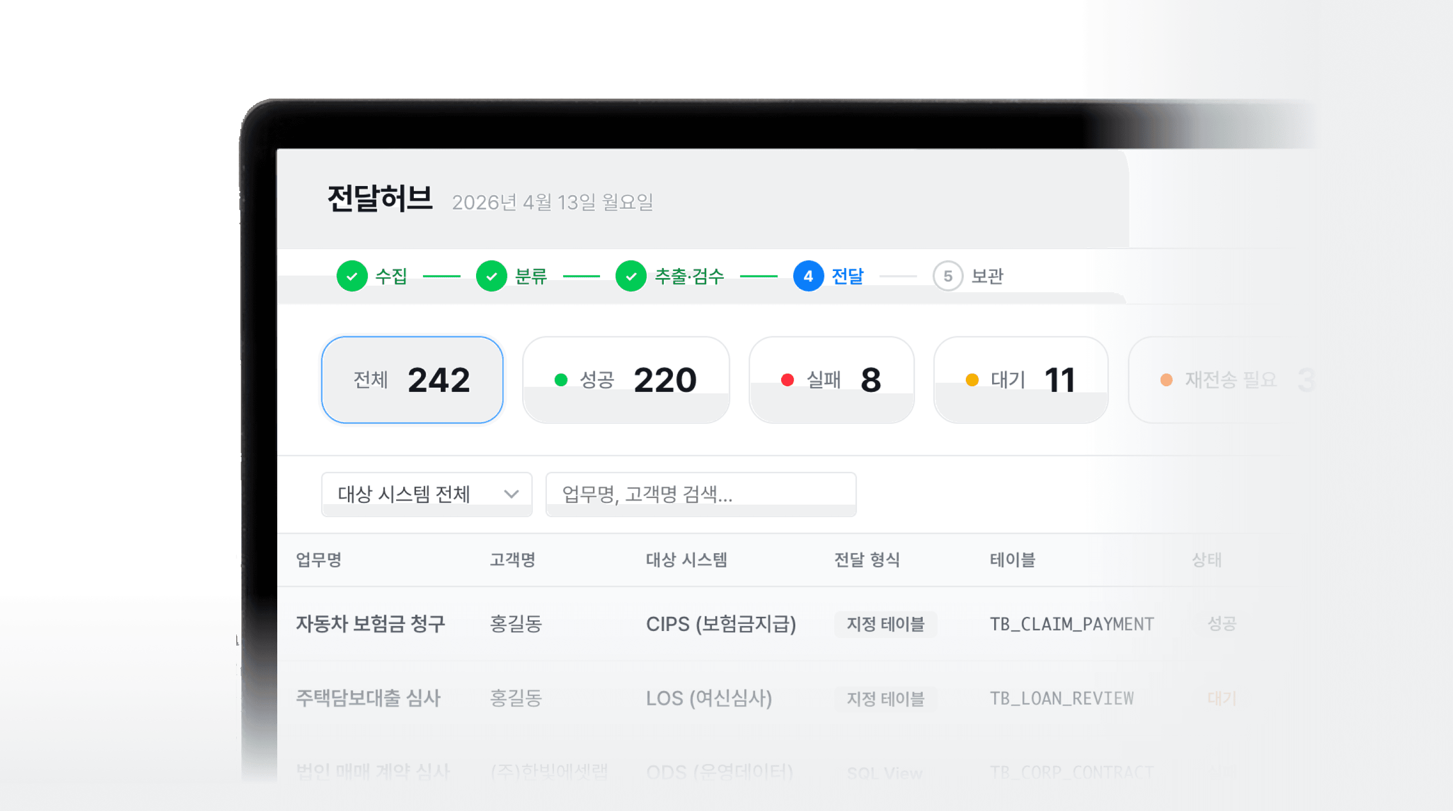 담당자는 예외 건만 빠르게 확인하며, 확정된 데이터는 사내 시스템에 연계됩니다.